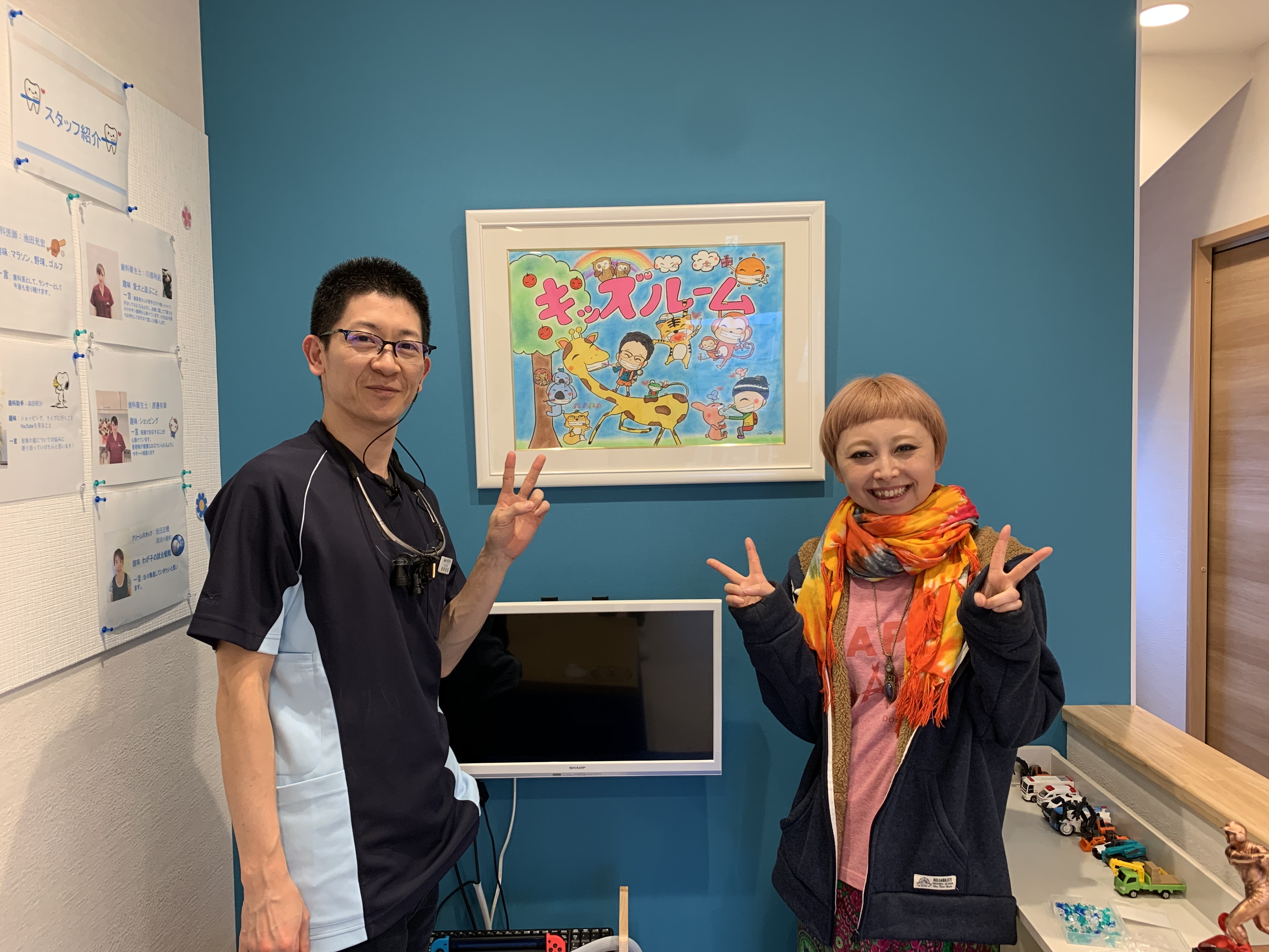 当院のキッズルームがリニューアルしました。キッズルームにとっても素敵な絵が飾られました(^^)/この絵を描いてくれたのは、ワンプラスワンの定員である中川さんです。